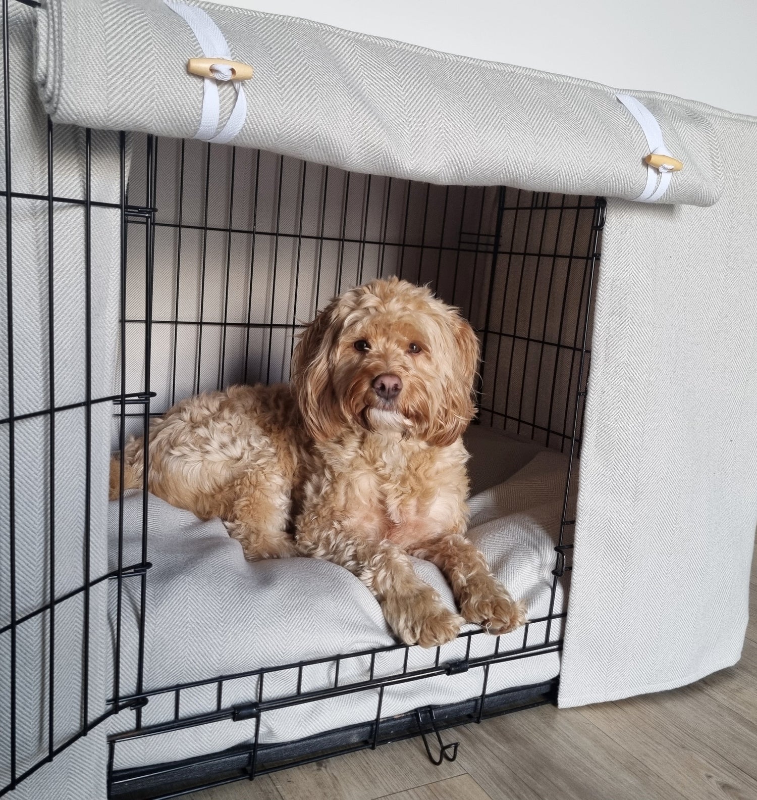 Absolutely love the crate cover, perfect fit and looks great. Our dog Buster looks nice and cosy and saves us putting blankets over the crate. Thank you so much!